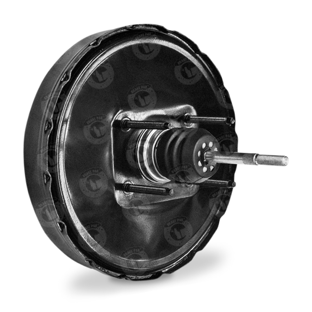 El Booster o servofreno es una carcasa metalizada que contiene una válvula y un diafragma, junto con un vástago que atraviesa el centro del servo, donde se conecta al pistón del cilindro maestro.